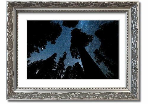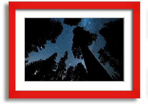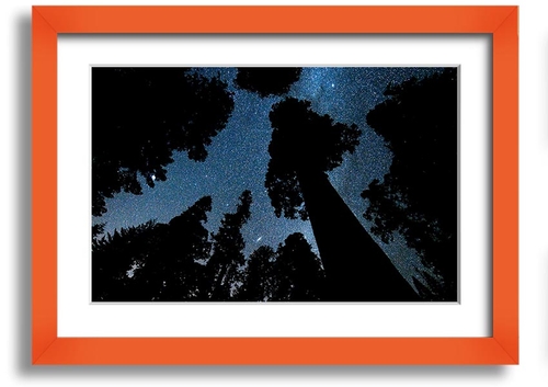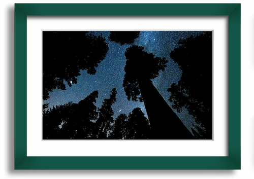Framed print of Andromeda and the Milky Way above Oregon, showcasing vibrant cosmic colors and intricate details.