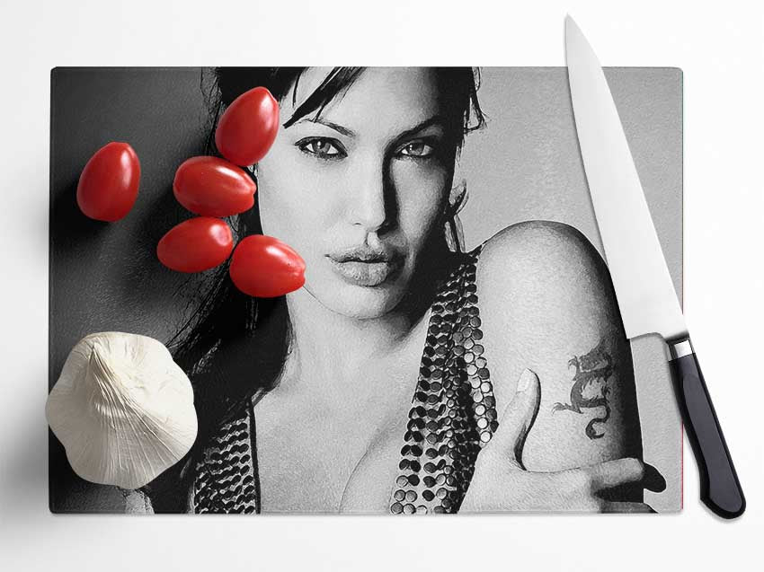 Introducing the Angelina Jolie Dragon Tattoo chopping board, a stunning addition to any kitchen that combines functionality with artistic flair. Made from high-quality tempered glass, this chopping board is not only visually appealing but also incredibly durable. Its unique design features the iconic dragon tattoo associated with Angelina Jolie, making it a perfect gift for fans and a stylish statement piece for your culinary space.