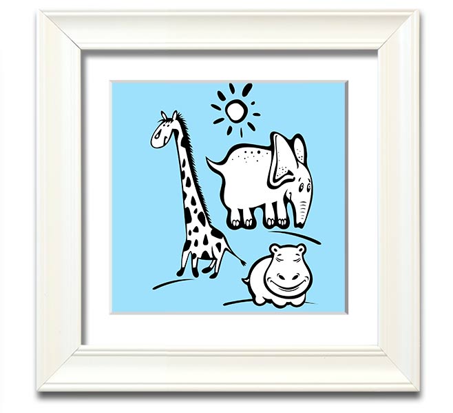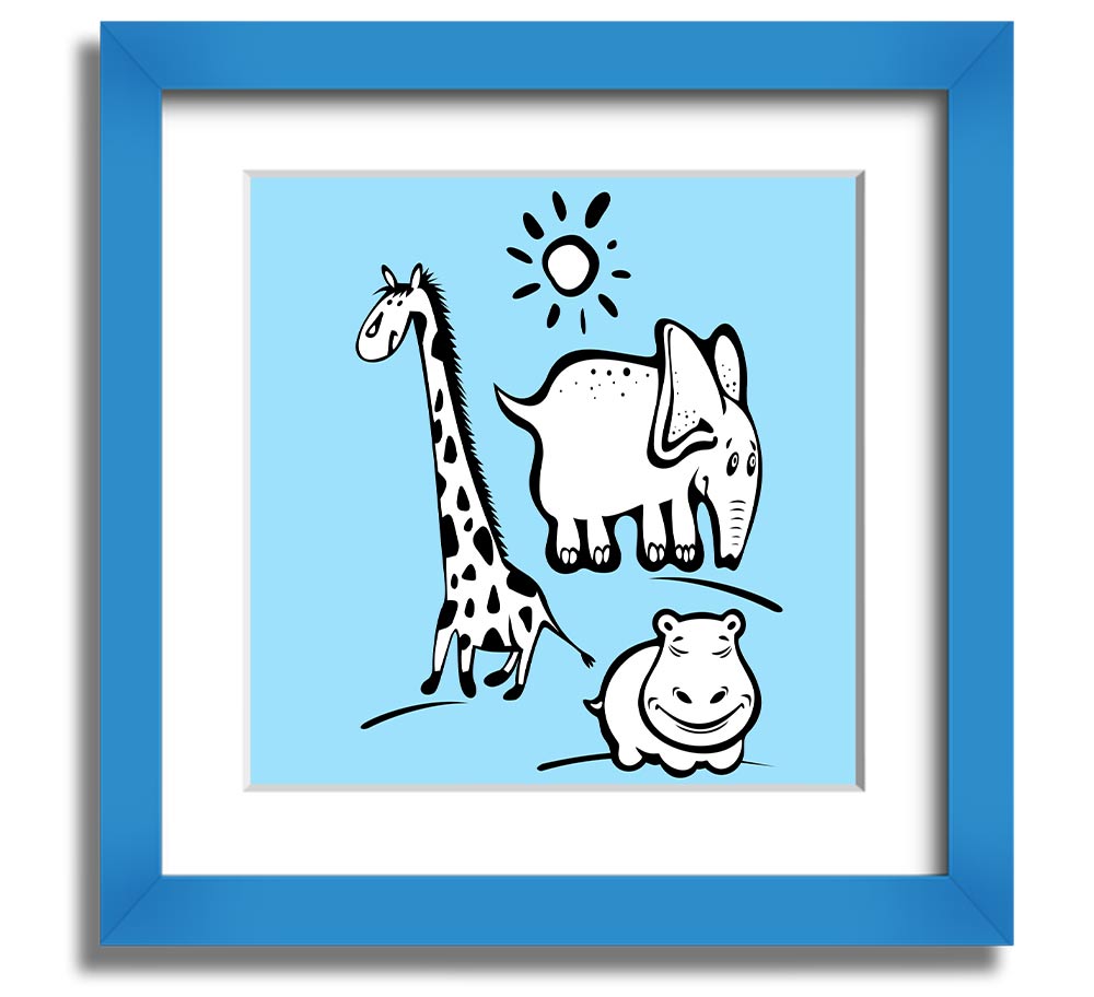The Animals Under The Sun Baby Blue square framed print is a delightful addition to any child's room or nursery. This beautifully crafted artwork features a charming animal theme that captures the essence of childhood wonder and imagination. Made with care in the United Kingdom, this print is not only visually appealing but also a high-quality piece that parents can trust.