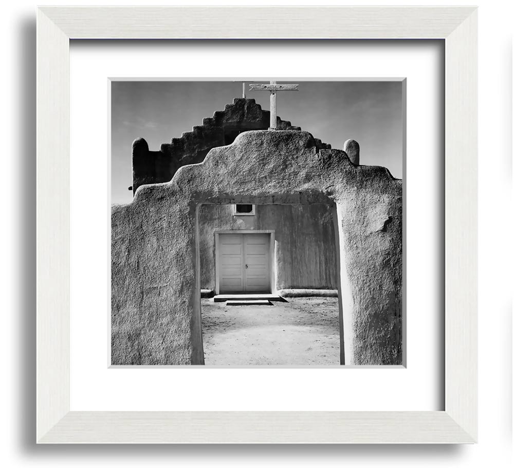 In summary, the Ansel Adams Church Intaos Pueblo New Mexico Square Framed Print is a stunning piece of art that combines quality craftsmanship, versatility, and convenience. With its ready-to-hang feature and multiple frame options, it is an excellent choice for anyone looking to enhance their decor with a touch of elegance and history.
