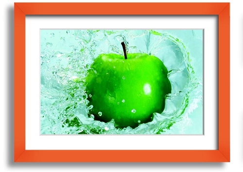 Vibrant Apple Splash framed print with multiple frame color options, handmade in the UK.