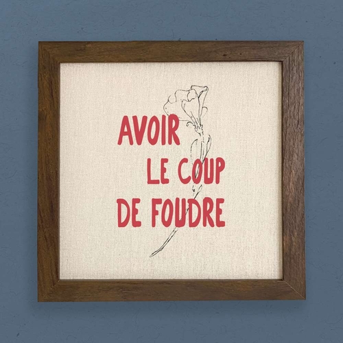 The Avoir le Coup de Foudre sign features a stylish wood frame that is both functional and aesthetically pleasing. Measuring 9" x 9" x 1.5", it is the perfect size to fit seamlessly into your existing decor. The frame is available in two beautiful options: a rich walnut finish or a charming white-washed look, allowing you to choose the perfect match for your home’s style.