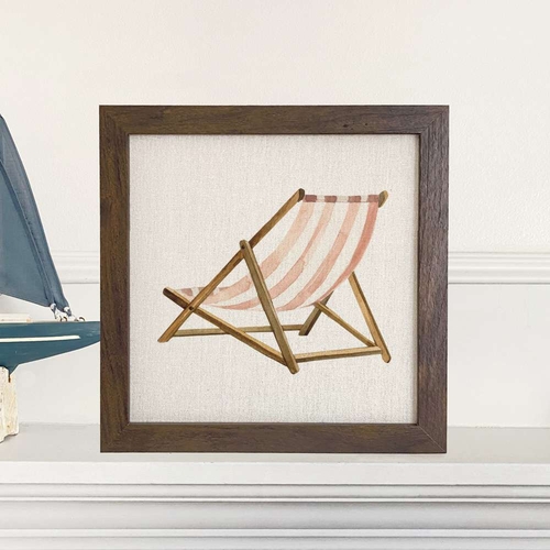 The Beach Chair - Framed Sign measures 9" x 9" x 1.5", making it an ideal size for various display options. The natural, linen-style appearance adds a touch of elegance and warmth to any room. You can choose between two stunning frame options: a rich walnut finish or a chic white-washed look, allowing you to customize the sign to match your existing decor.