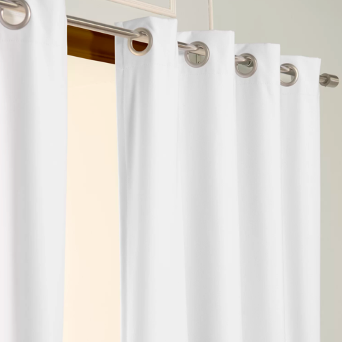 • 4 Piece Set includes 2 Panels and 2 matching tie-backs. with 6 silver grommets on each panel. Fits on a standard-sized curtain rod.
