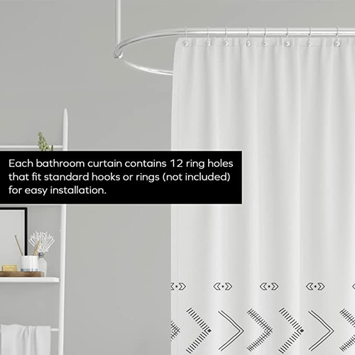 • EASY INSTALLATION: Really easy to attach these bathroom curtains to the shower rod. Each bathroom curtain contains 12 ring holes that fit standard hooks or rings (not included) for easy installation.