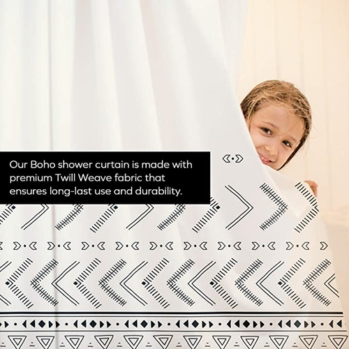 • HIGH QUALITY: Our boho shower curtain is 52% Polyester and 48% Cotton with 170 GSM, which is made with premium Twill Weave fabric that ensures long-last use and durability. Elegant and upscale look easy to update bathroom decor theme.