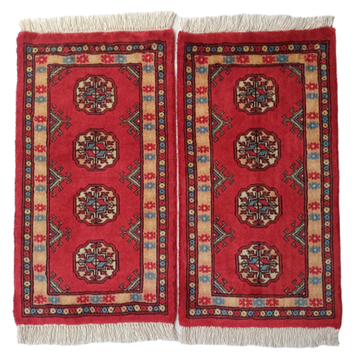 Bokhara is a comparatively rare type of woolen Handknotted RED mat, having a hand-knotted style, Heriz geometric patterns gives a unique look and feel. The wefts strands (serving a decorative role rather than the structural role of knotted carpets) are threaded through some warp strands and then looped back. Bokhara’s are great with contemporary, traditional, and modern decors with an excellent decorative choice due to its exceptional quality.