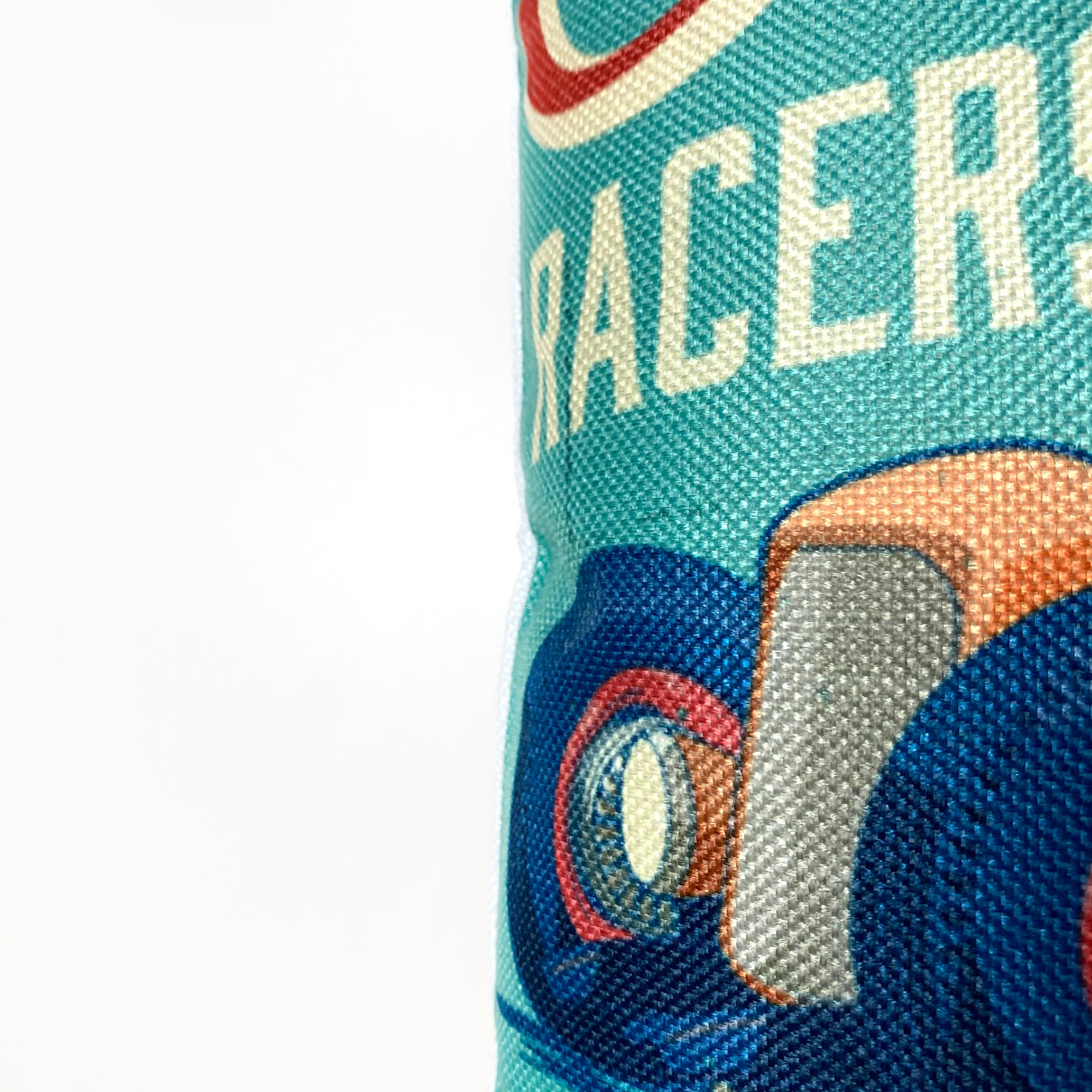 The rich contrast of zesty orange and seaside blue creates an eye-catching design that is sure to grab attention. Whether you place it in a boy's room or a rustic-styled living area, this pillow cover will serve as a perfect accent piece. The California Hot Rod Racers graphic on the front captures the essence of speed and adventure, making it an ideal gift for dads and car lovers alike.