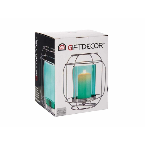 Dropship Candleholder Silver Blue Lantern Metal Glass (19 x 20 x 19 cm)
