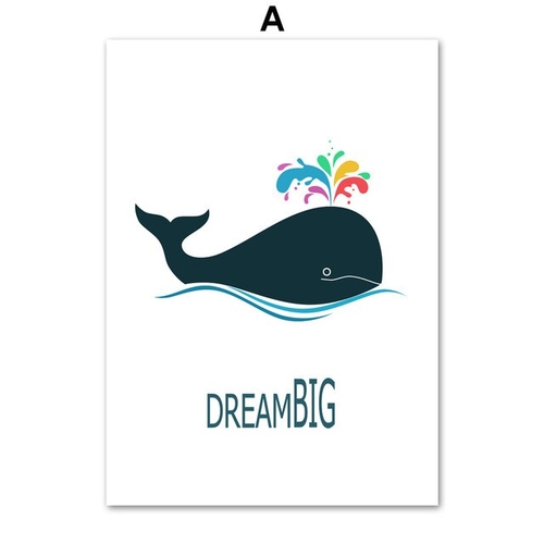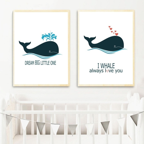Dropship Cartoon Blue Whale Dream Quotes Wall Art