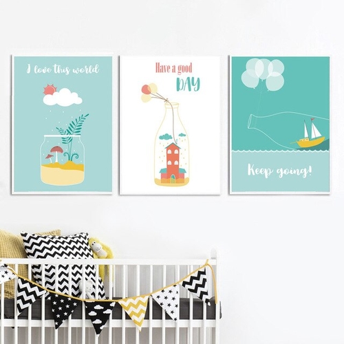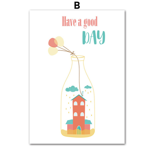 Dropship Cartoon Bottle House Balloon Wall Art Canvas