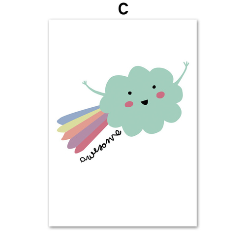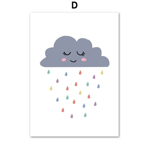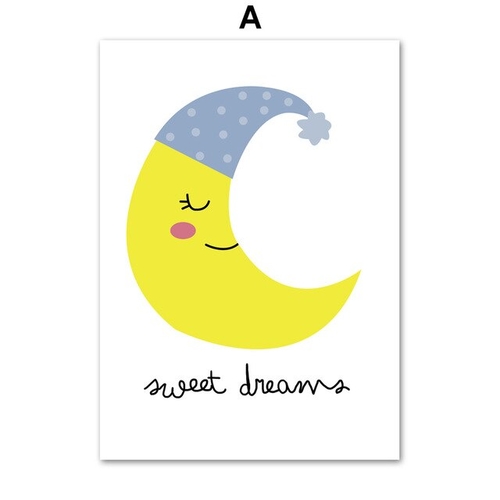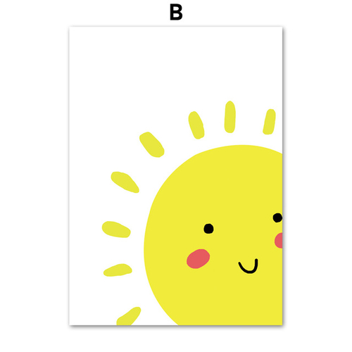 Dropship Cartoon Moon Sun Cloud Wall Art Canvas