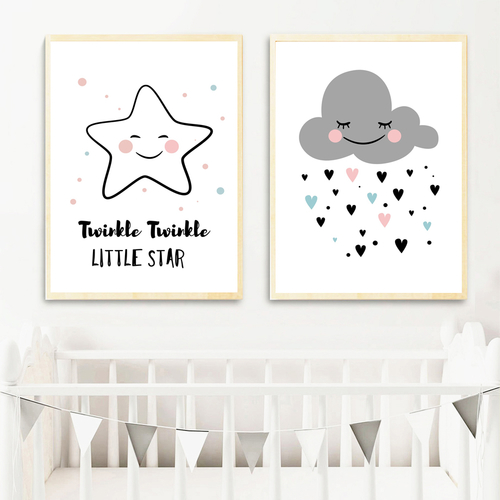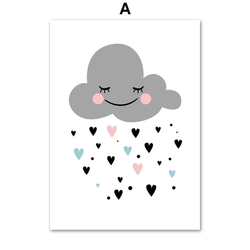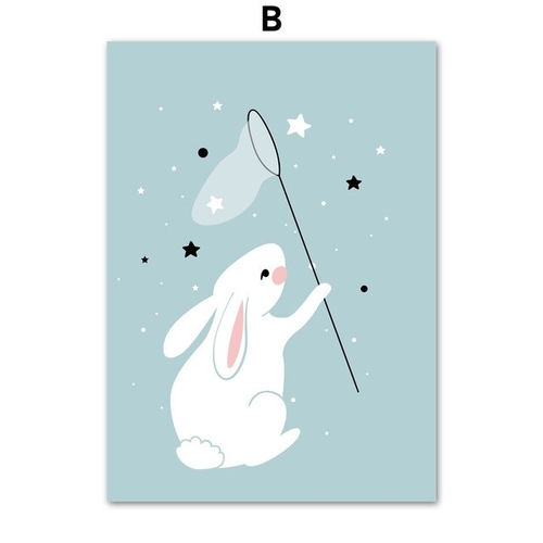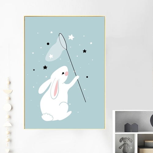 Dropship Cartoon Scandinavian Rabbit Cloud Star Wall Art