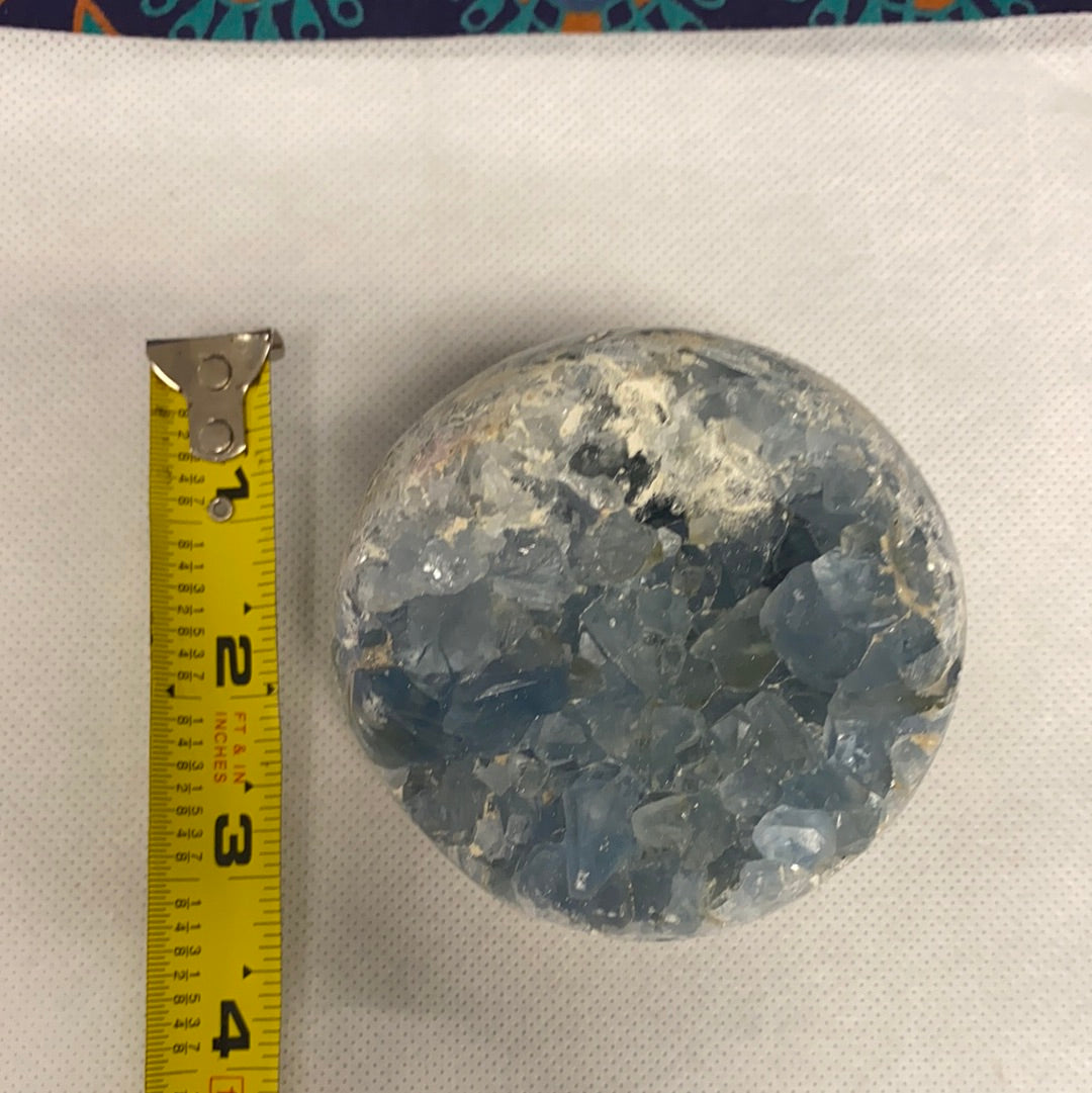Celestite Geode Sphere #4 is an excellent addition to any meditation or healing practice. You can place it on your altar, use it during meditation sessions, or simply keep it in your living space to benefit from its calming energy. When meditating with Celestite, consider focusing on your breath and visualizing the blue light of the mineral enveloping you, bringing peace and clarity to your mind.