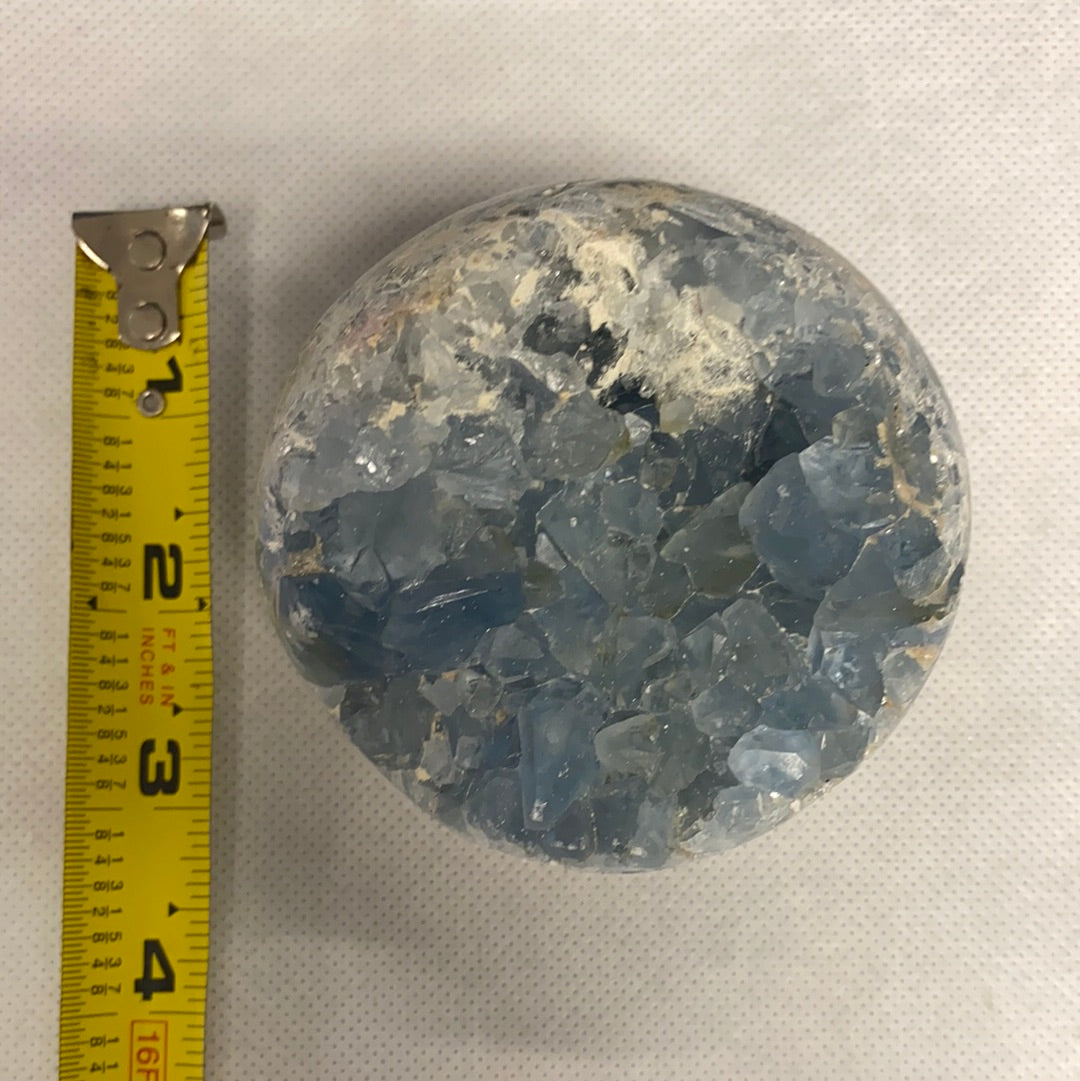 In summary, Celestite Geode Sphere #4 is not just a beautiful decorative piece; it is a powerful tool for enhancing intuition, promoting emotional balance, and facilitating spiritual growth. Whether you are a seasoned crystal user or just beginning your journey, this stunning mineral can provide the support and energy you need to navigate life's challenges with grace and clarity.