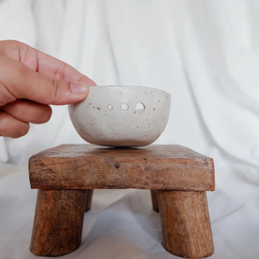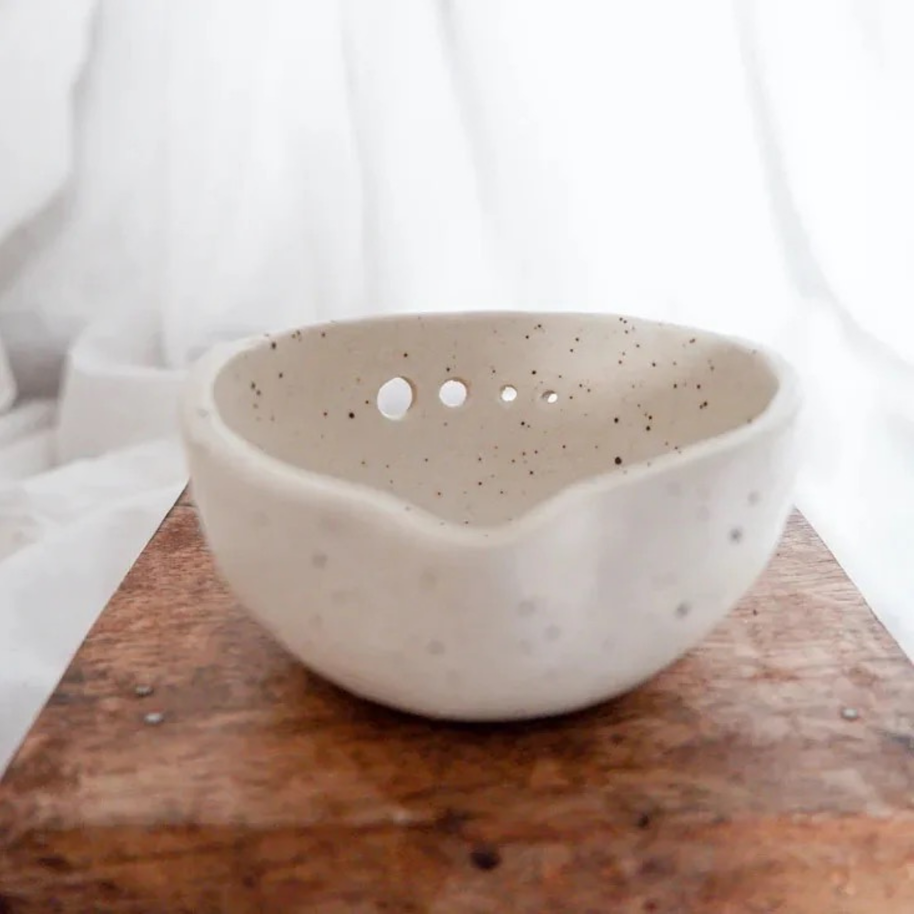 Ceramic Herb Stripper with multiple sized holes for easy herb preparation, featuring an ergonomic grip for comfort.