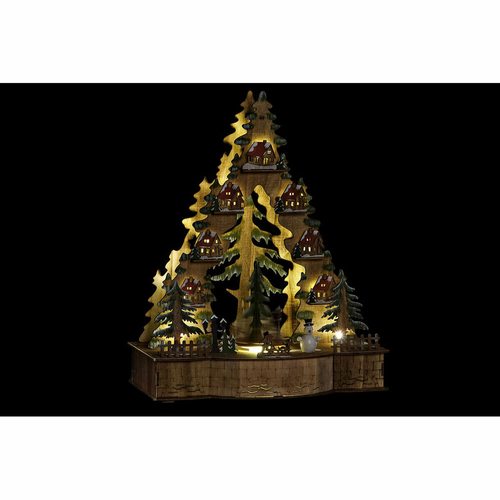 If you want to add a touch of originality to your home, you will do so with Christmas bauble DKD Home Decor Green Natural Wood Tree Houses 30 x 15 x 37 cm (3 Units).