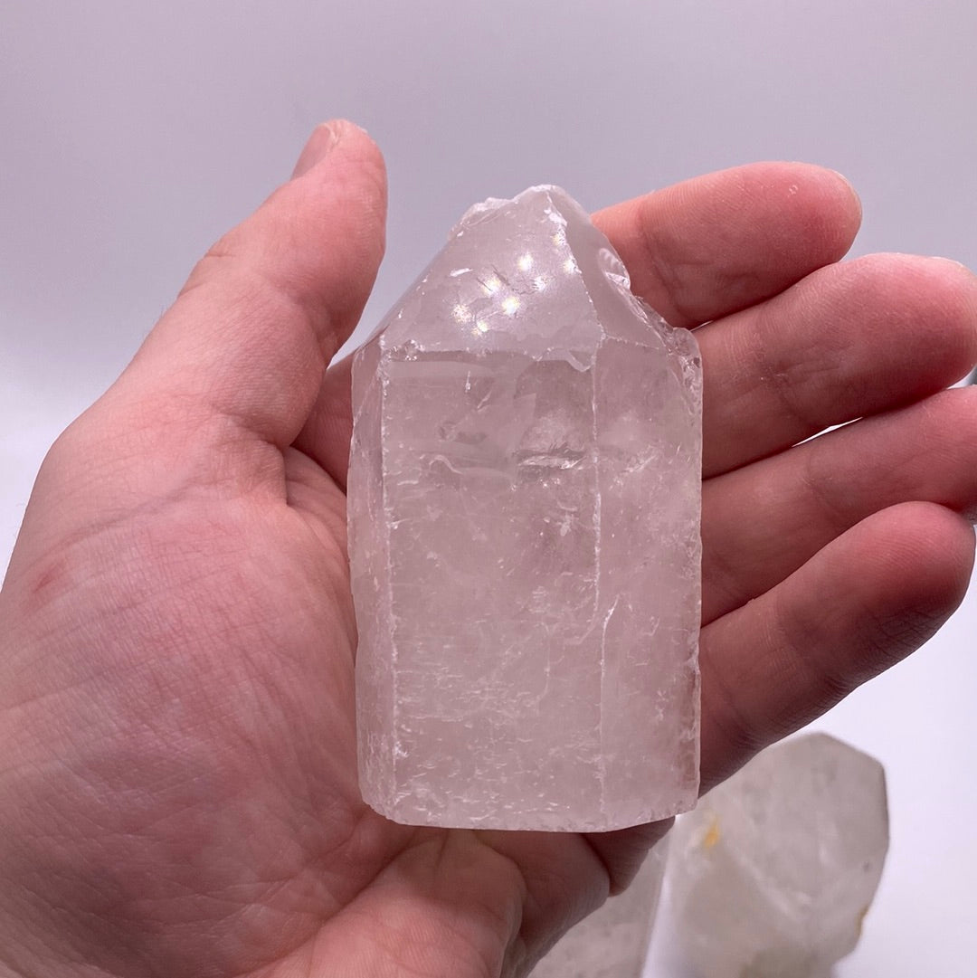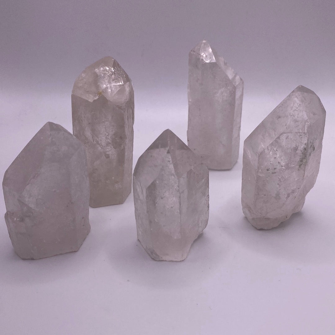 Clear Quartz Points Cut Base is a stunning and versatile healing stone that has been cherished for centuries. Known as the 'master healer,' clear quartz is renowned for its ability to amplify energy and thought, making it an essential tool for anyone interested in spiritual growth and healing. This particular piece features a beautifully cut base, allowing it to stand elegantly while showcasing its natural beauty.