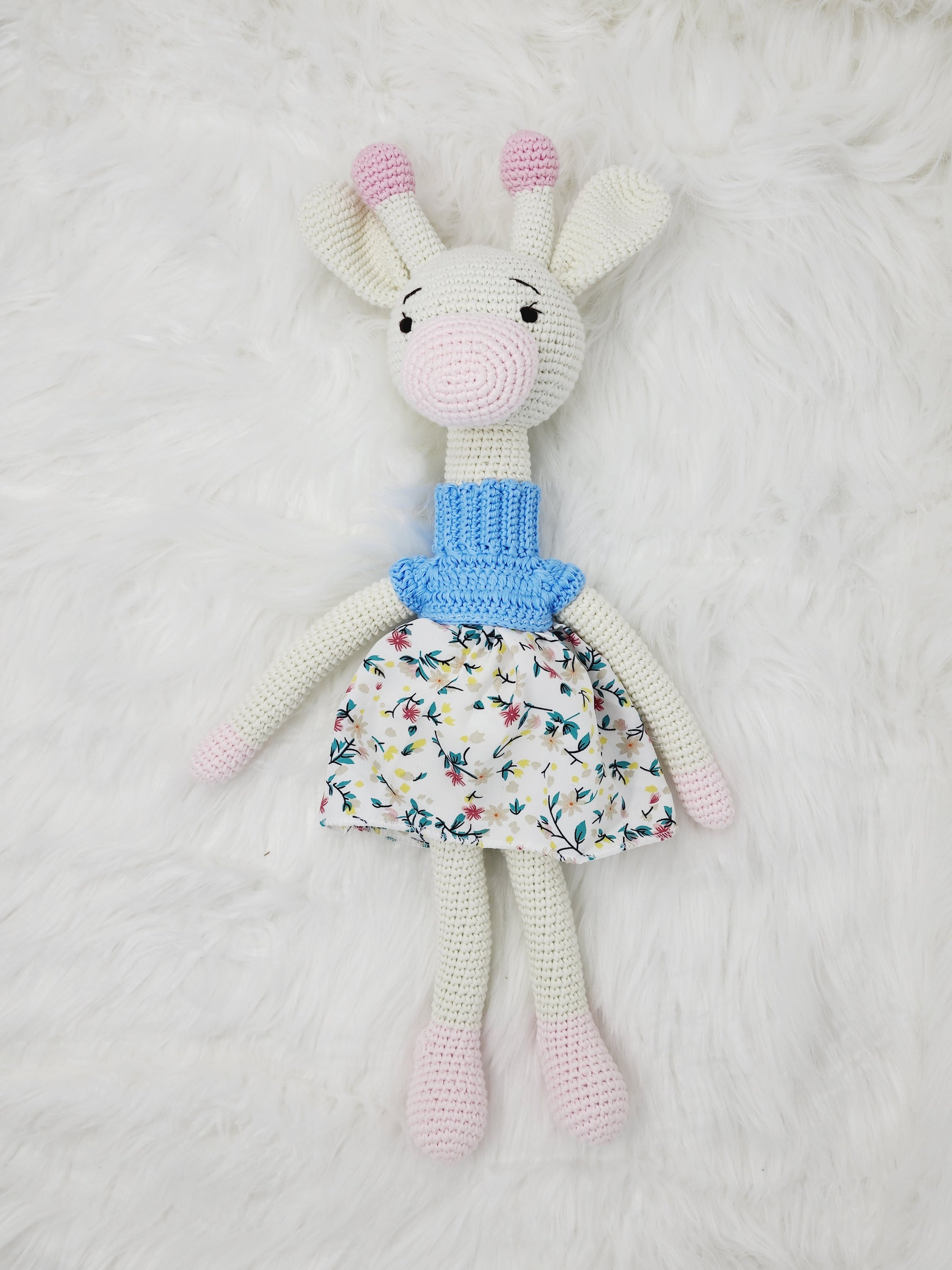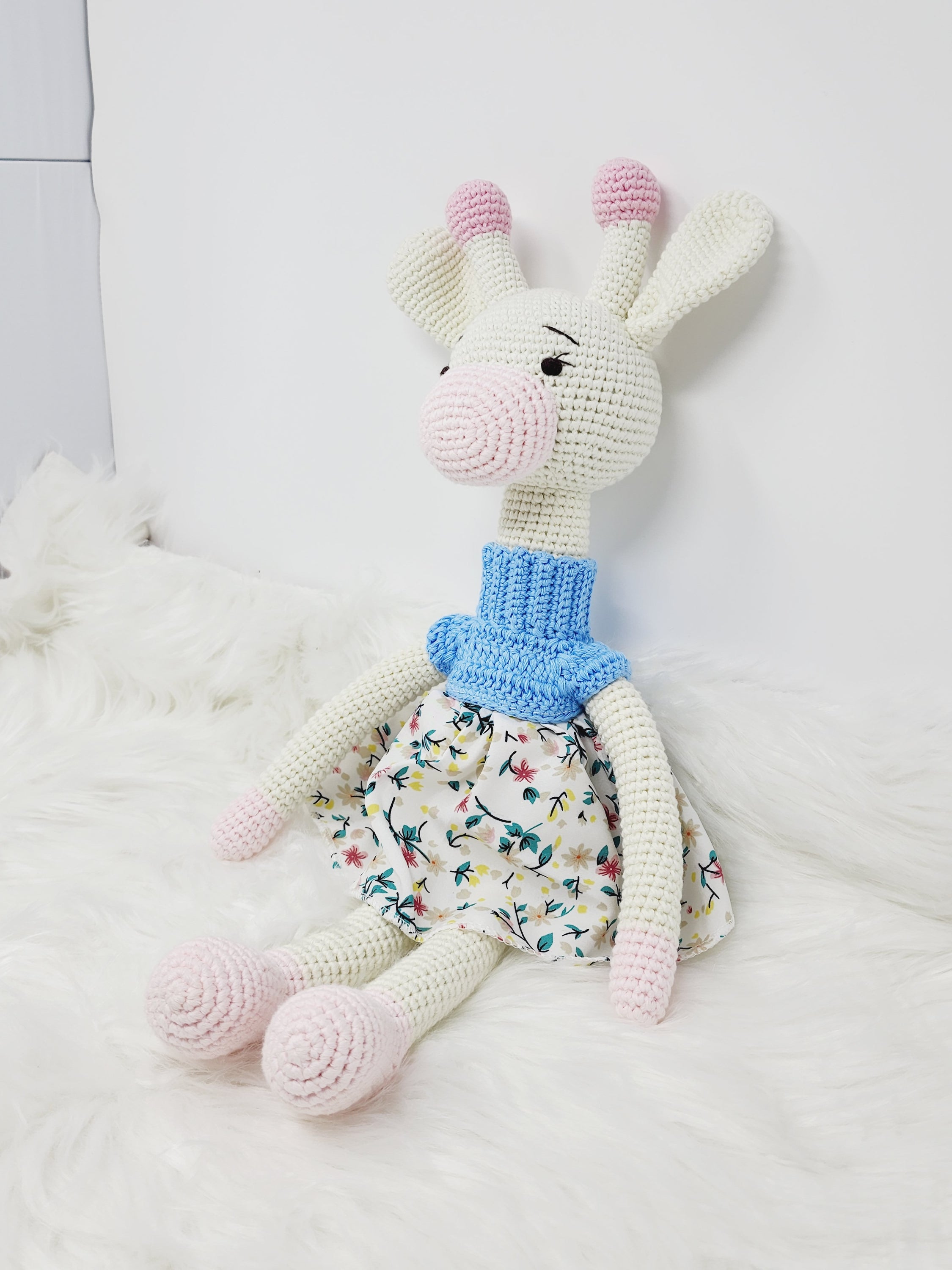 Introducing our delightful Crochet Giraffe Stuffed Animal Toy, a charming addition to any child's toy collection or nursery decor. This large girl doll in a dress is not just a toy; it's a handcrafted masterpiece made from 100% cotton yarn, ensuring both softness and durability. Perfect for birthdays, baby showers, or simply as a decorative piece in your home, this giraffe is sure to bring joy to any child.