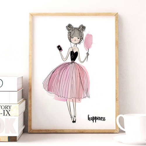 • Purpose: Cute Cartoon Girl in Beautiful Dress Decor Wall Picture Art Painting