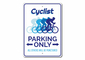 A vibrant Cyclist Parking Sign made of durable aluminum, featuring a bicycle graphic and customizable text options.