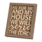 As For Me and My House Shadow Box Framed Wall or Tabletop Print 8 x 10 These simple words say it beautifully: "As for me and my house we will serve the Lord." White words are on the back side of glass that's raised 1/2" above a plain background, so the words create shadows for a dimensional effect. Wood frame has natural wood grain tone finish. Perfect for either tabletop or wall display; on back of the frame are both a metal wall hanger and a pull-out easel. Frame dimensions are 9" x 11" x 1 1/4". Glass window is 8" x 10".
