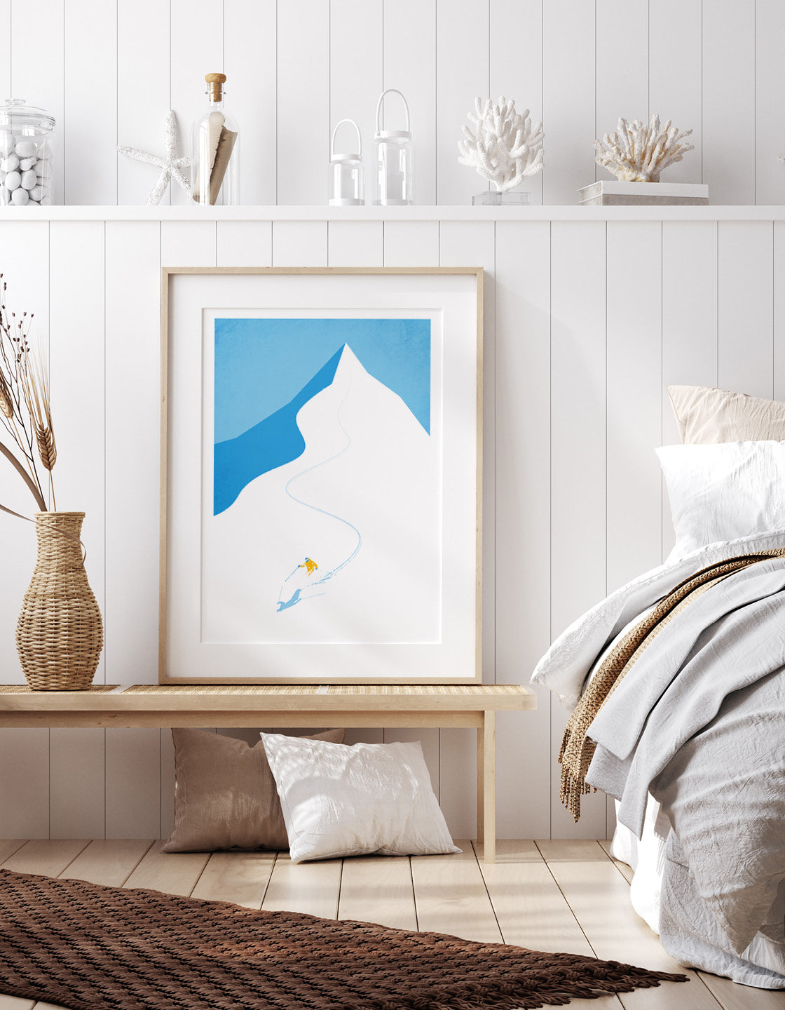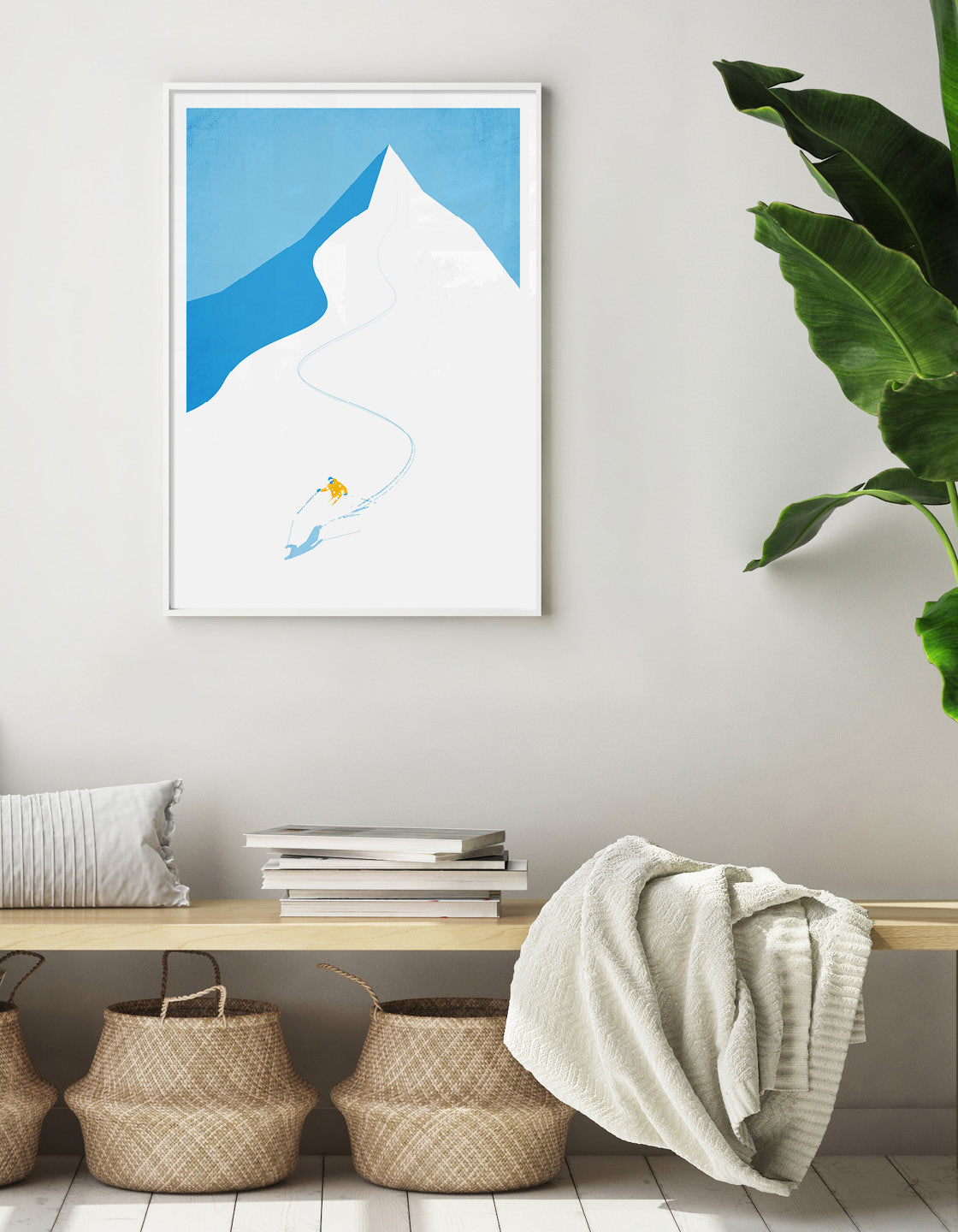 Transform your space into a winter wonderland with our downhill ski poster as a focal point in your gallery wall decor. Pair it with other travel-themed prints or winter landscapes to create a cohesive and inviting atmosphere. This poster is versatile enough to complement various art styles, making it a perfect addition to your home.