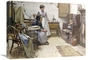 - In our finished production studio the canvas is stretched and fit onto a custom-cut wooden frame