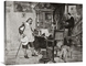 - In our finished production studio the canvas is stretched and fit onto a custom-cut wooden frame