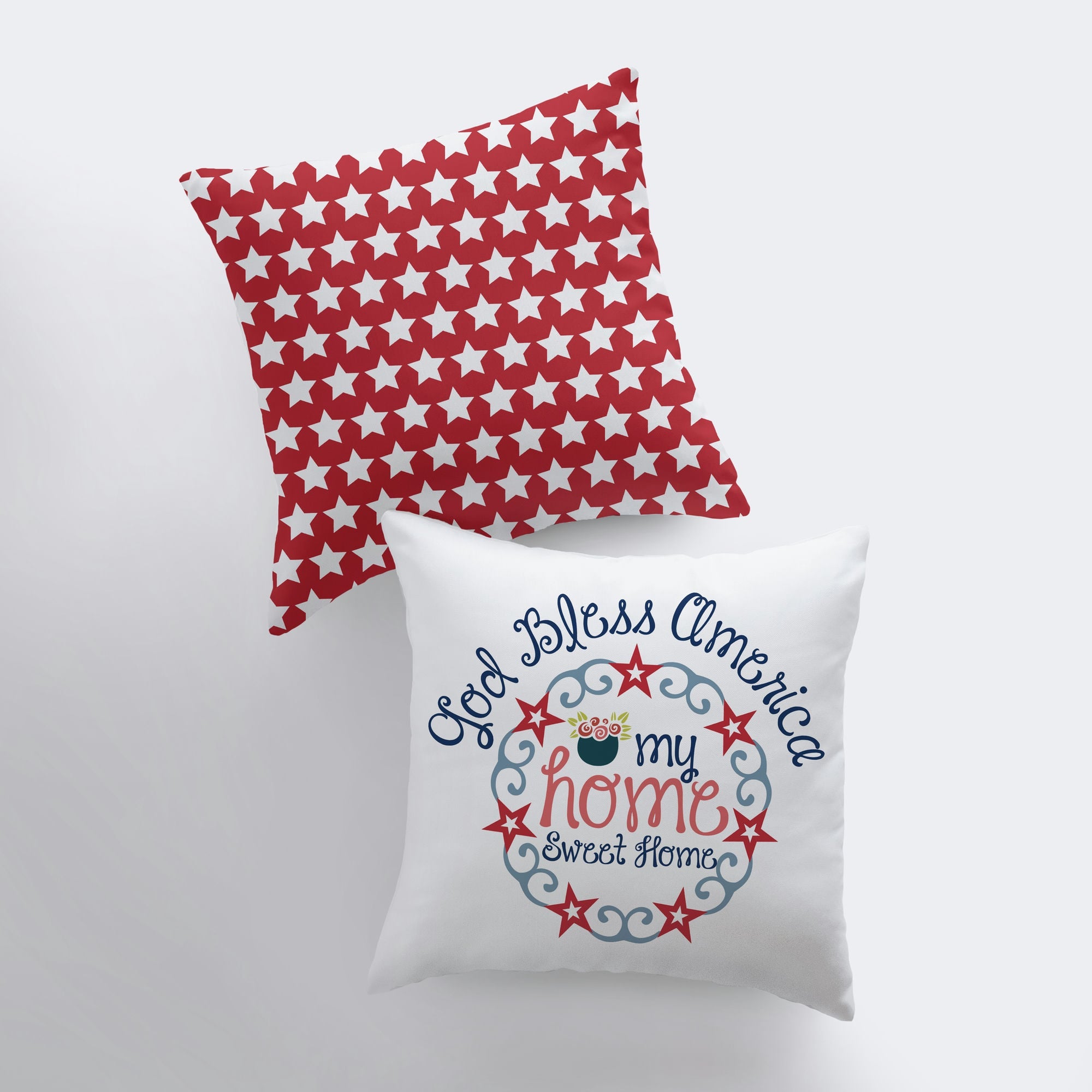 The God Bless America Pillow Cover is crafted from a durable cotton and polyester blend, ensuring that it is not only visually appealing but also sturdy and long-lasting. The fabric is neatly woven, providing a soft yet resilient surface that can withstand everyday use. Additionally, the edges are over-sewn for added durability, and the concealed zipper closure offers a sleek and polished look, making it easy to remove and clean.