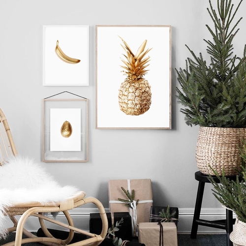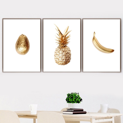 Dropship Gold Pineapple Banana Avocado Wall Art