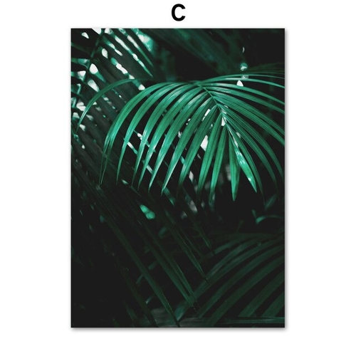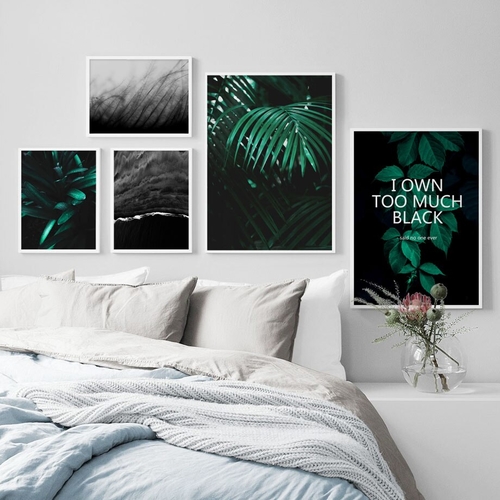 Dropship Green Palm Leaf Black White Sea Landscape Wall Art