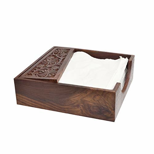 Introducing our exquisite Hand Carved Rosewood Wooden Tissue Paper Rack Napkin Holder, a perfect blend of functionality and elegance. Crafted from premium quality rosewood (Sheesham wood), this tissue holder is not just a utility item but also a stunning decorative piece that enhances the aesthetic of any space. Whether you place it on your dining table, office desk, or living room, it adds a touch of sophistication and charm.