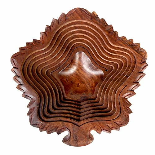 Introducing our exquisite Handmade Collapsible Foldable Wooden Fruit Basket Serving Bowls, a perfect blend of functionality and artistry. Crafted from premium Rosewood (Sheesham Wood), this fruit basket not only serves as a practical kitchen accessory but also adds a touch of elegance to your home decor. The rich brown color of the wood enhances its natural beauty, making it a stunning centerpiece for any dining table or kitchen counter.
