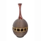 The Clayton Spun Bamboo Vase is a beautiful and rich piece of decor, combining modern design with natural materials. The sleek spun bamboo silhouette has a nice texture, while the slick shiny, metal top is adorned with brass studs for detail and contrast. A Decorative band of wider Bamboo strips stretches around the vase allowing for an additional touch of visual interest.