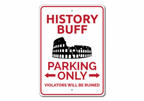 Introducing the History Buff Parking Sign, a unique and creative way to reserve your parking space while showcasing your love for history. This sign is not just a practical solution for informing visitors about your reserved parking slot, but it also serves as a decorative piece that reflects your interests. Made from high-quality aluminum, this sign is designed to withstand the elements, ensuring that it remains vibrant and intact for years to come.