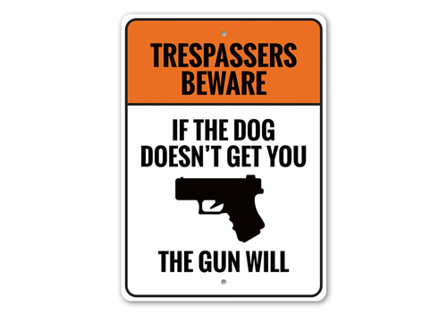 If the Dog Doesn't Get You 2nd Amendment Caution Sign made of high-quality aluminum, featuring a humorous design perfect for home decor.