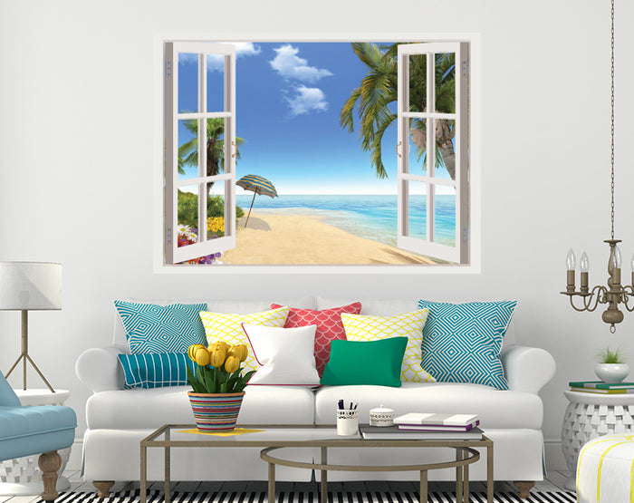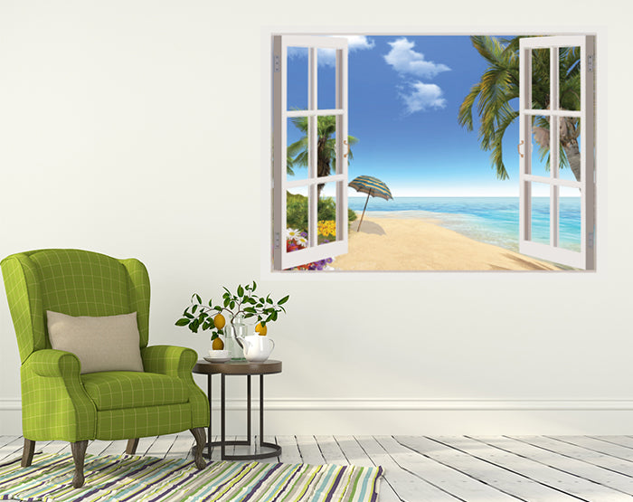 A vibrant 3D window wall decal showcasing a scenic view, perfect for enhancing interior spaces with removable vinyl stickers.