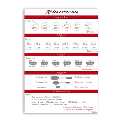 • Purpose: Kitchen Conversions Chart Wall Poster Art Painting