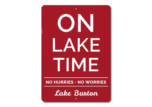 Enhance your lakehouse decor with our stunning Lake Name On Lake Time Sign. This unique decorative sign is designed to showcase your love for the lake and quickly becomes the focal point of any room. Crafted from premium aluminum, this sign is built to last, ensuring years of enjoyment both indoors and outdoors. Whether you're looking to add a personal touch to your own space or searching for the perfect gift for a friend with a lakeside cabin, this customizable sign is an excellent choice.