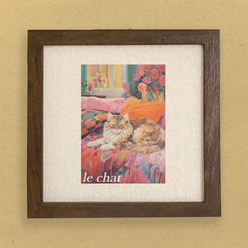 The Le Chat framed sign boasts a natural, linen-style appearance that complements a variety of interior design themes. Whether your home is modern, rustic, or somewhere in between, this sign will fit right in. The choice of frame options, including walnut and white-washed finishes, allows you to select the perfect match for your decor.
