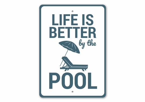 Transform your living space with the charming 'Life is Better by the Pool' sign, a perfect addition to any poolside area or home decor. This sign not only serves as a delightful reminder of the joys of relaxation by the water but also enhances the aesthetic appeal of your surroundings. Crafted from high-quality aluminum, this sign is designed to withstand the elements, making it suitable for both indoor and outdoor use.