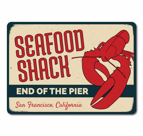 Explore our wide range of designs, including business signs, parking signs, man cave decor, warning signs, street signs, and more. With so many options available, you’re sure to find the perfect sign to suit your needs. Buy your Lobster Seafood Shack Sign today and elevate your coastal decor!