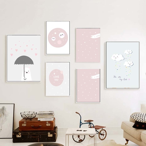 Dropship Love Theme Cartoon Weather Wall Art Pink