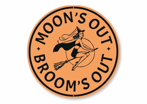 Introducing the Moons Out Brooms Out Sign, a stunning addition to your home decor that combines quality craftsmanship with a fun design. This eye-catching metal sign is perfect for adding a touch of personality to any room, whether it's your bedroom, man cave, game room, or even your garage. Made from the best quality aluminum, this sign is built to last, ensuring years of enjoyment both indoors and outdoors.