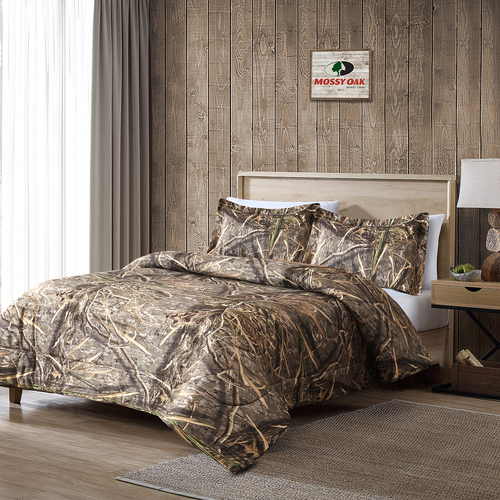 Bring the outdoors into your bedroom with this Mossy Oak Shadow Grass Habitat. This comforter set is perfect for anyone who loves the outdoors, hunting, and camouflage. The forest comforter is crafted from polyester and is both durable and soft to the touch. The classic camo pattern will bring a touch of nature indoors. The set includes a wildlife comforter and matching pillow shams. This cabin comforter set is machine washable and available in various sizes. Whether you’re a hunter or outdoor enthusiast, or want to add a touch of the outdoors to your bedroom, this Mossy Oak rustic comforter set have you covered.