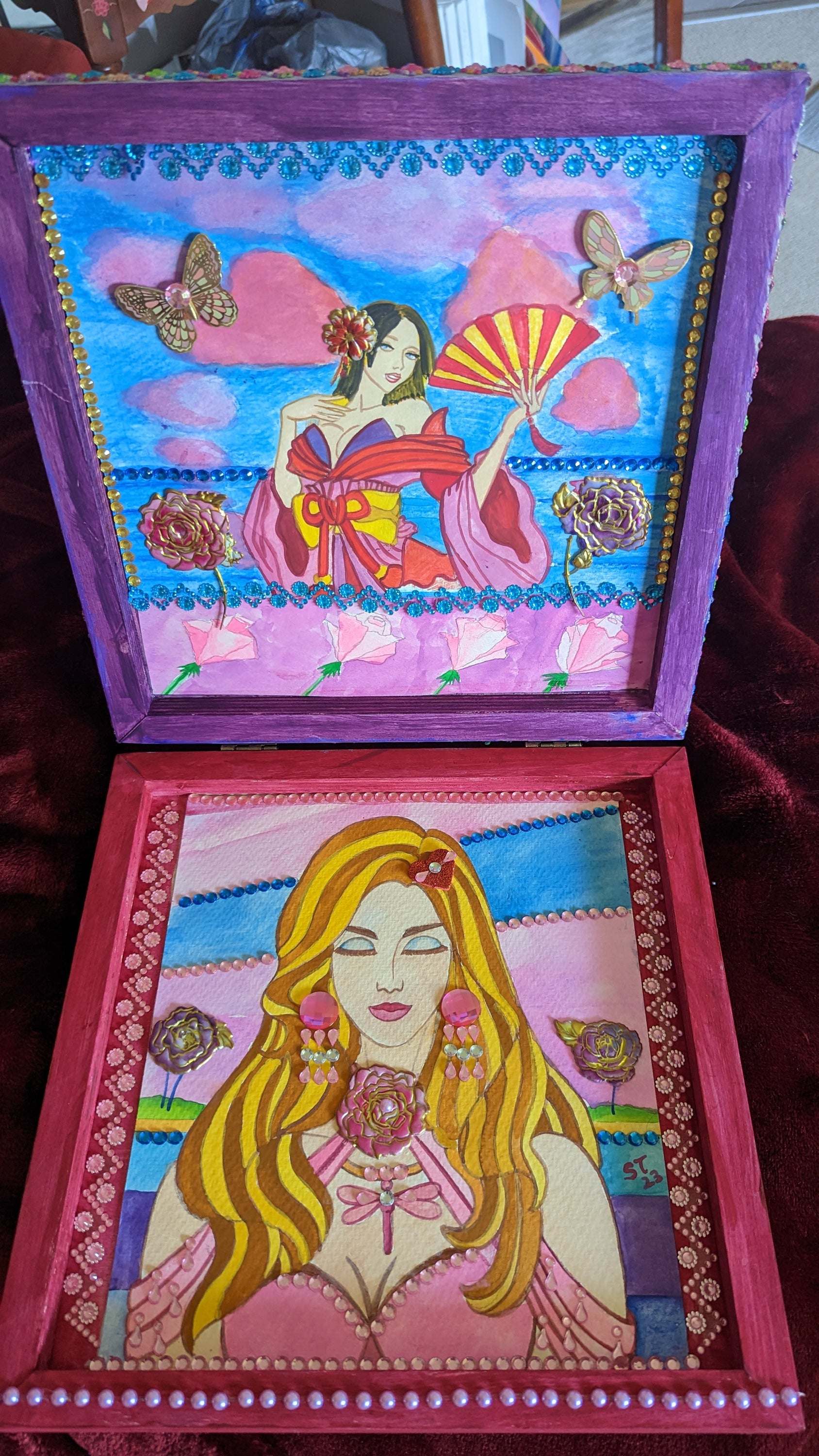 Sharon Tatem's Wish Boxes are not just decorative items; they are magical vessels designed to bring your dreams to life. Each box is meticulously hand-decorated by the talented fine artist Sharon Tatem, featuring her enchanting maidens, each with its own unique story and powers. These Wish Boxes serve as a beautiful reminder that your wishes can manifest into reality.