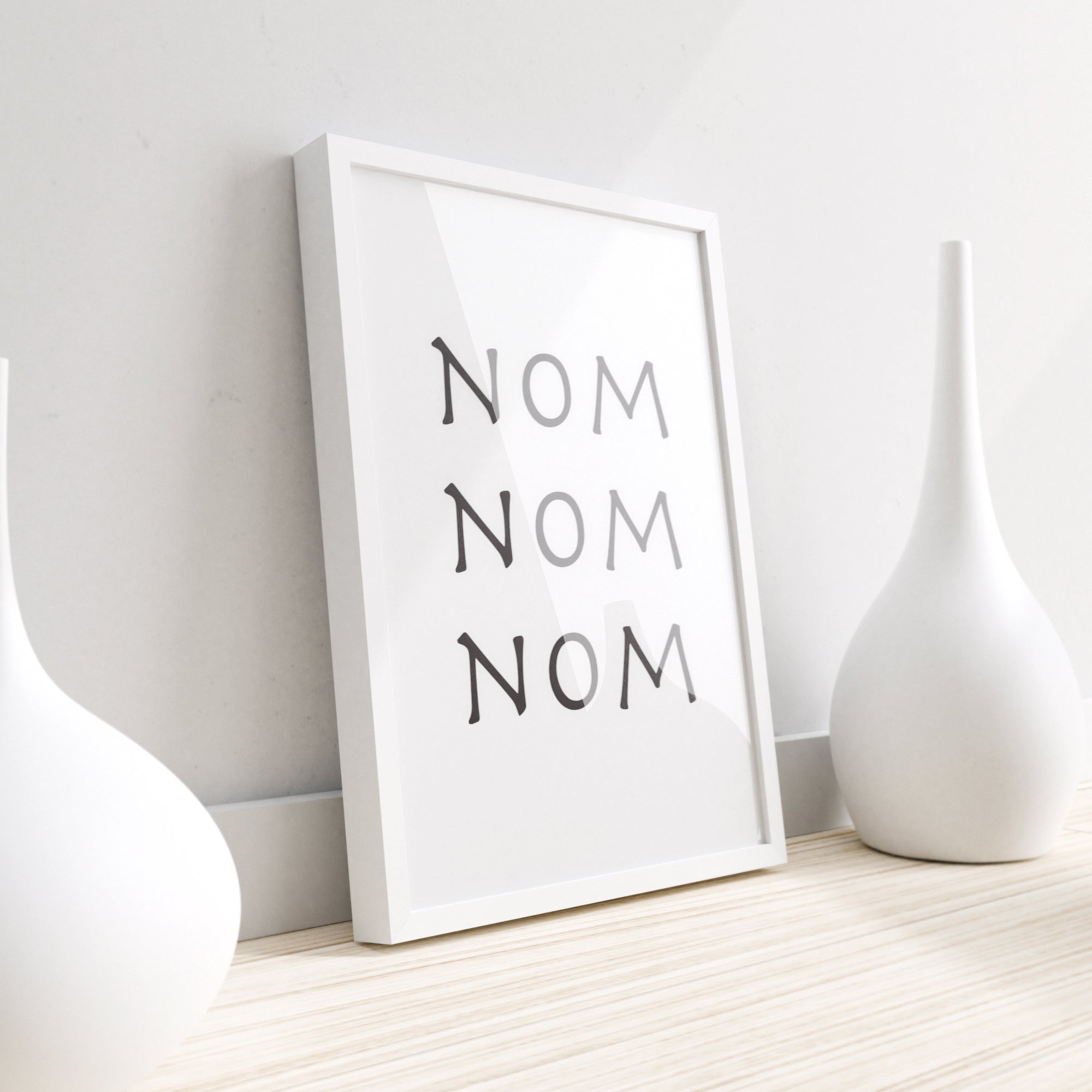 Introducing the Nom Nom Nom - Kitchen Wall Print, a delightful addition to your kitchen decor that brings a touch of humor and creativity to your dining space. This charming wall art is perfect for those who love to cook and enjoy the culinary arts. Whether you hang it in your kitchen, dining room, or even your home office, this print is sure to spark joy and conversation.