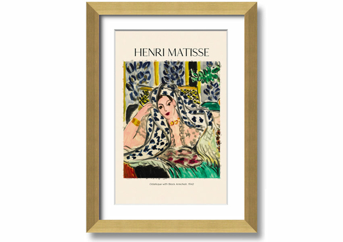 Henri Matisse, a leading figure in modern art, is renowned for his use of color and form. 'Odalisque With Black Armchair' exemplifies his unique style, showcasing a harmonious blend of bold colors and fluid lines. This artwork captures the essence of Matisse's exploration of the human figure and interior spaces, making it a significant piece for both art lovers and collectors alike.