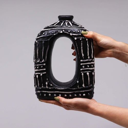 Introducing the exquisite Oval Shaped Vase, a stunning ceramic masterpiece that beautifully blends tradition with artistic talent. This unique vase, crafted from high-quality clay and terracotta, is designed to elevate your home decor and add a touch of elegance to any room. With its distinctive oval shape, this vase is not just a functional item but a statement piece that captures attention and admiration.